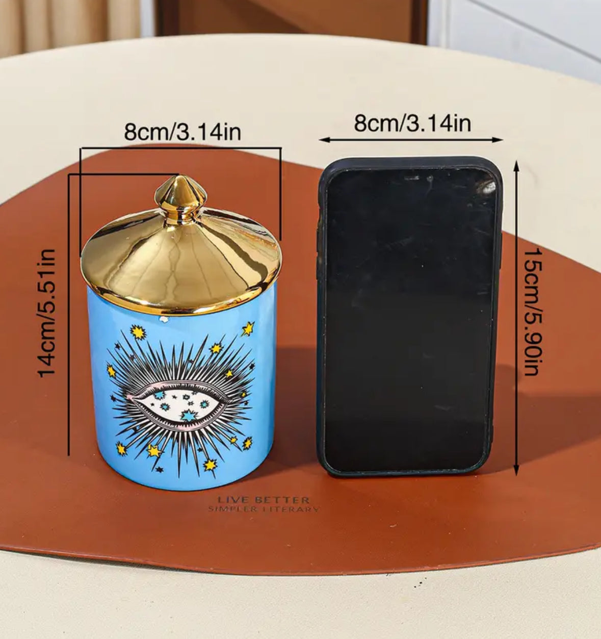 KokoBoho Eye-Catching Blue Ceramic Jar with Gold Lid – Boho Luxe Storage & Decorative Accent